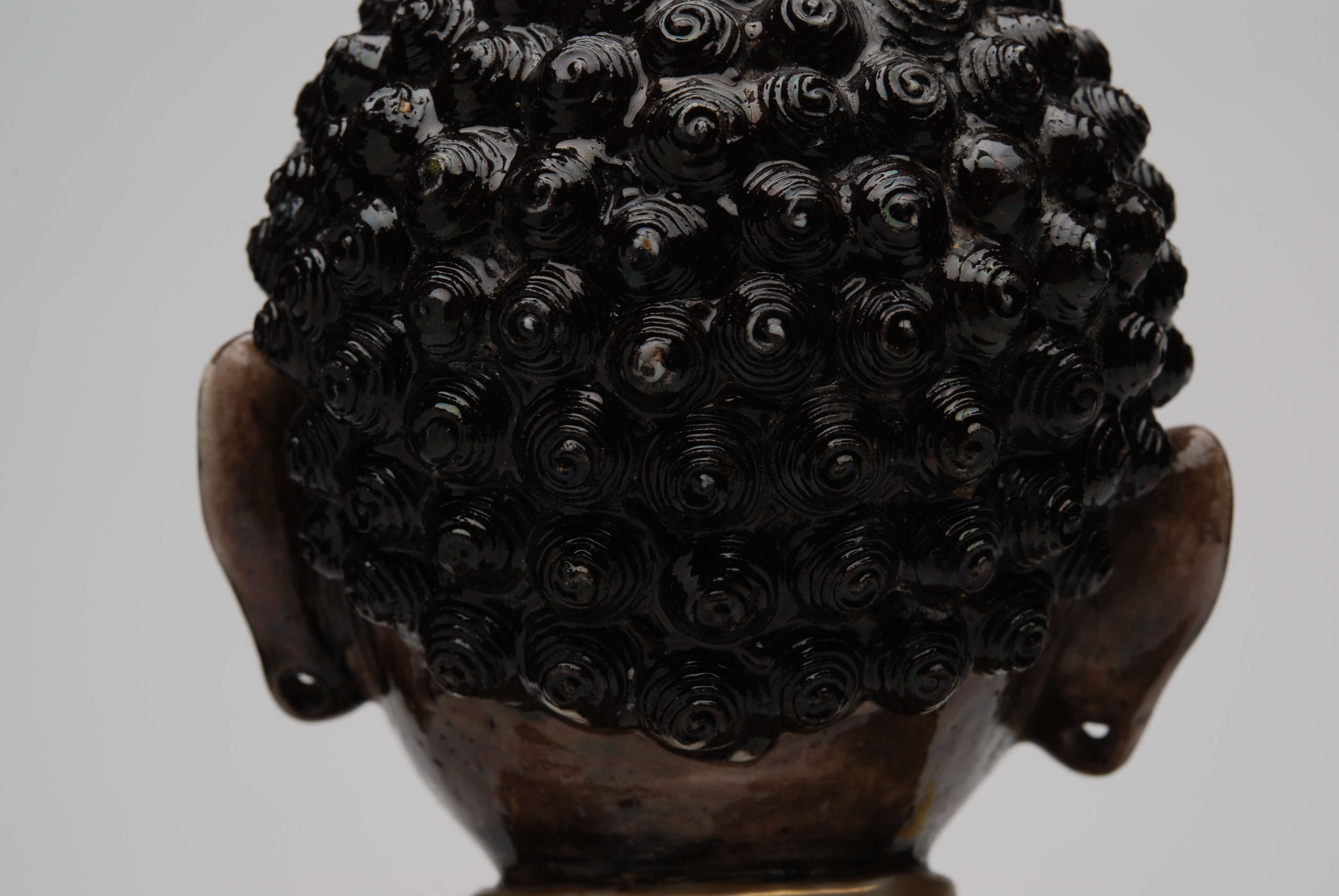 This figure, undoubtably been made as a special private order, is likely to have been based on illustrations. It is recorded that dark skinned Africans were in China during the Tang Dynasty (618-907AD), but by the Kangxi period they were rarely seen. A direct source for this figure has yet been found, but we do know that European prints and drawings were often used as design inspiration by the Chinese potters. Perhaps even a mixture of images were used, including those of American Indians wearing feather skirts – like those representing the American continent on early maps. The attributes he carries such as the cornucopia and the sash, are of course distinctly European.
