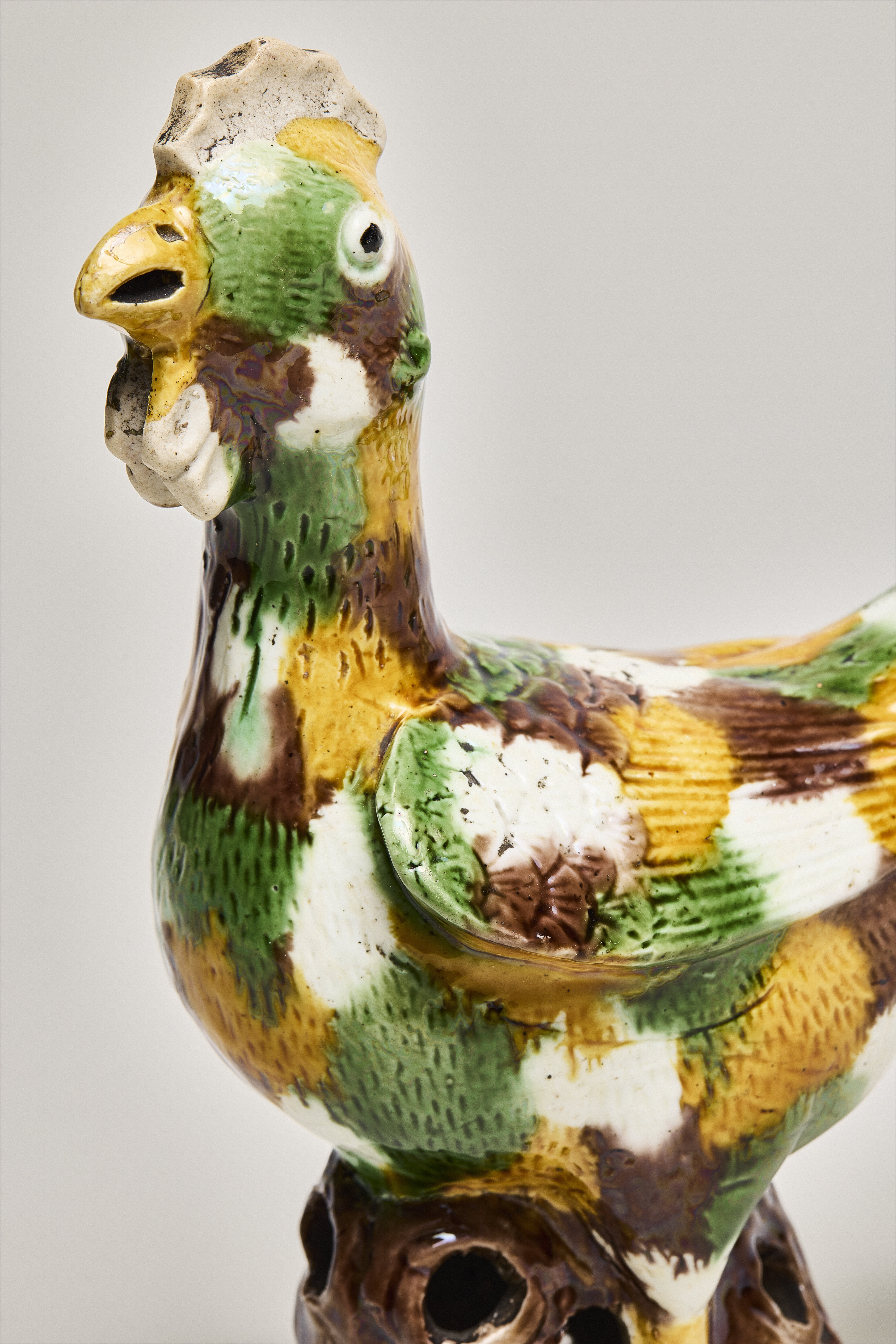 Two domestic fowl in Egg & Spinach enamels are in the Copeland Collection in the Peabody Essex Museum, Salem, as well as two pairs of famille rose roosters.