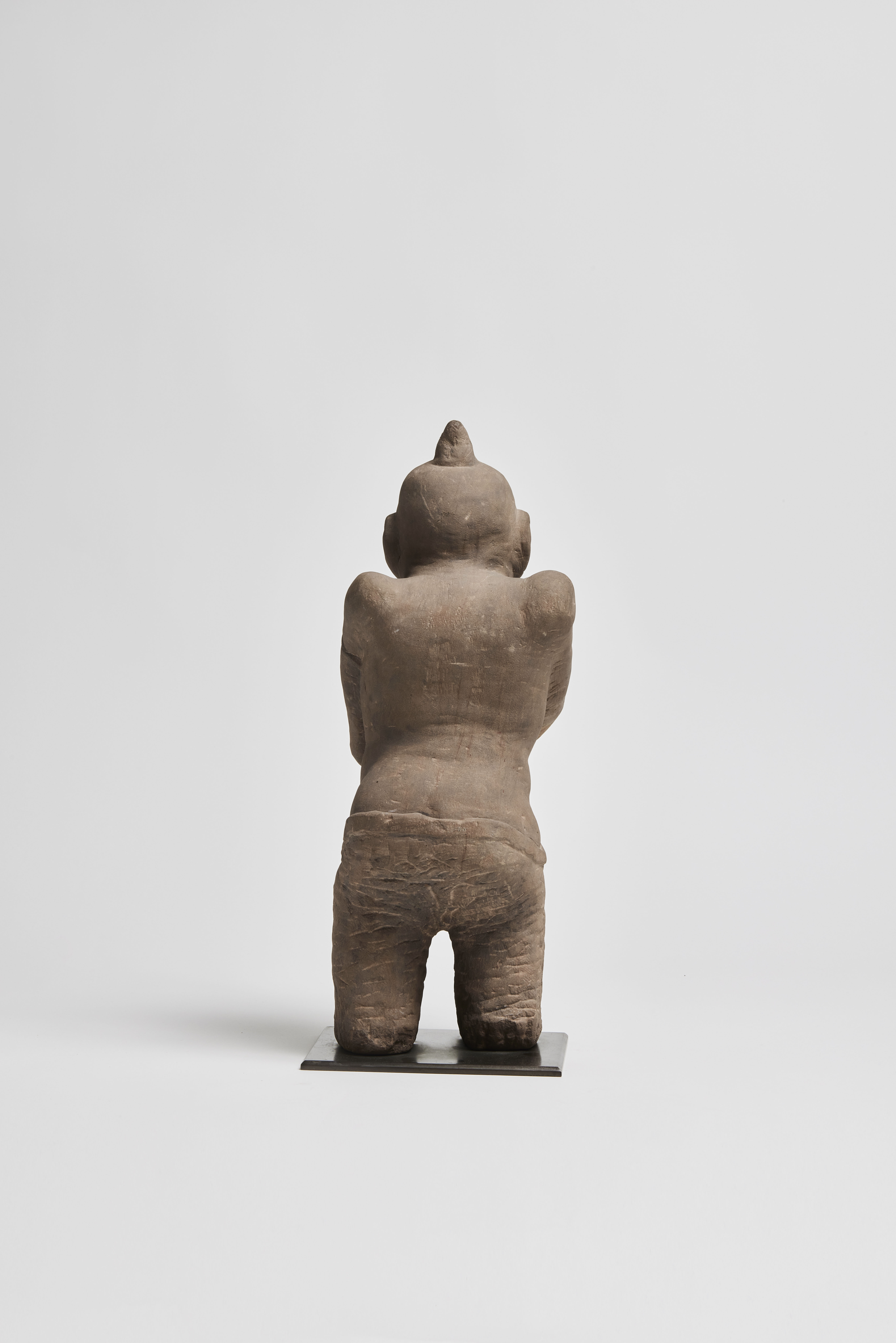 We have not been able to find a similar figure carved from stone. However, comparable ceramic figures of drummers can be found in private as well as in museum collections. The Sichuan Provincial Museum has a similar postured drummer made of pottery. The Minneapolis Institute of Art, has a pottery figure of a squatting drummer (acc.nr. 2003.101). A brickwork tile from the exhibited in the Metropolitan Museum, New York from the same period, has a relief with a banquet scene with entertainers.