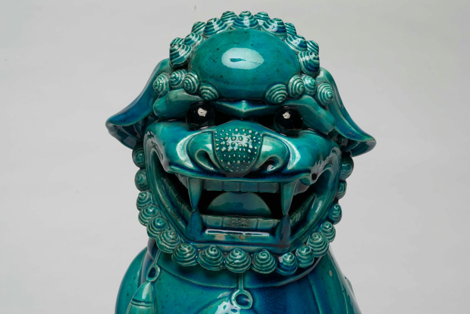 Don’t be afraid of using colour in your interior! Vibrant Turquoise porcelains bring joy to any space. Here we have clustered smaller and larger objects together with an original 18th century Chinese wallpaper panel as a backdrop.